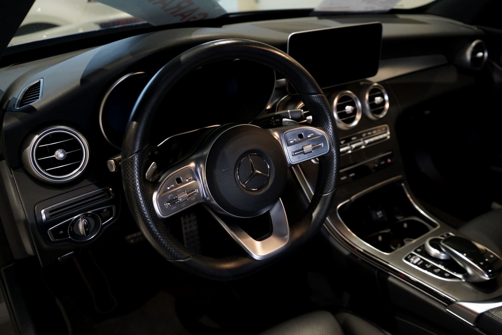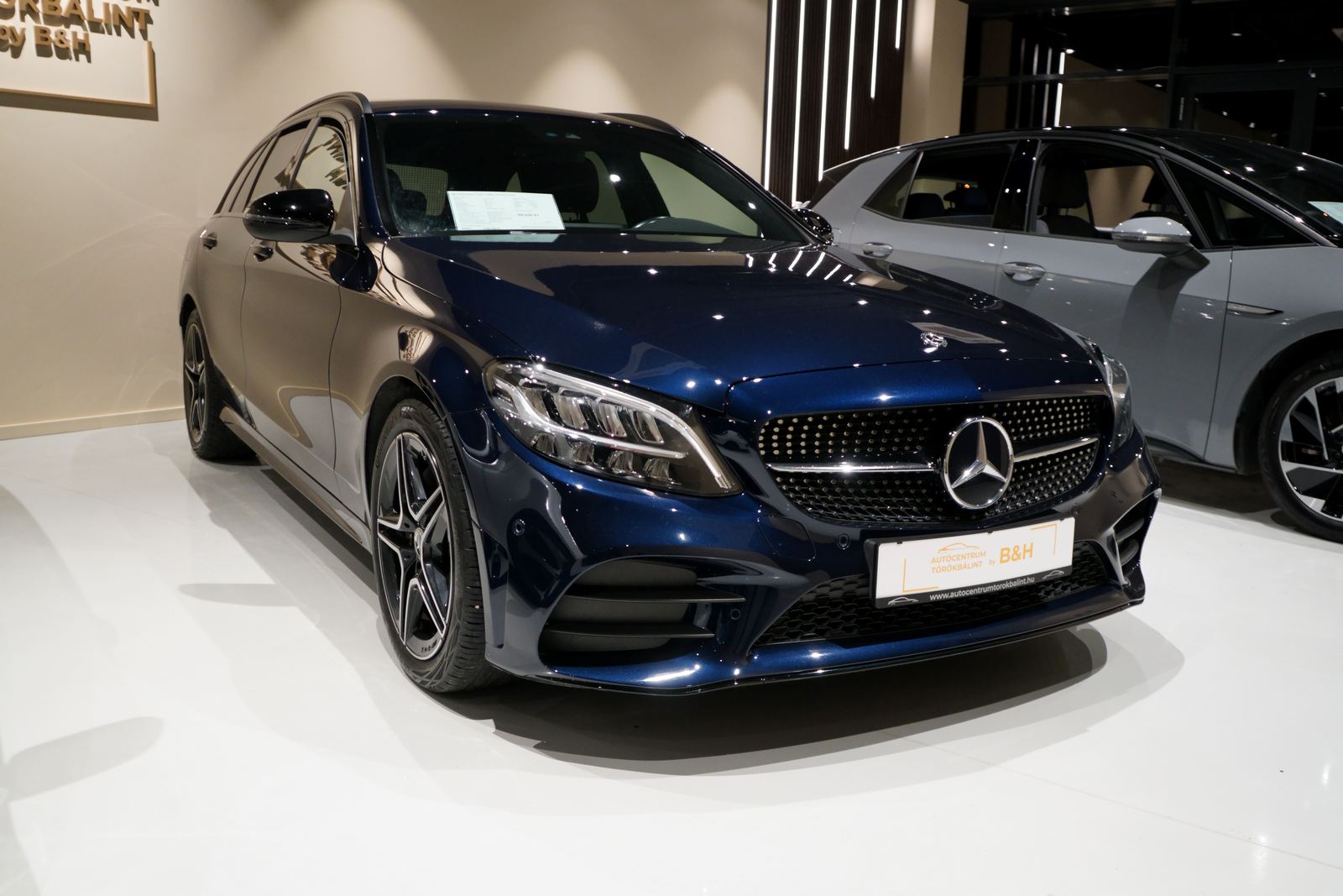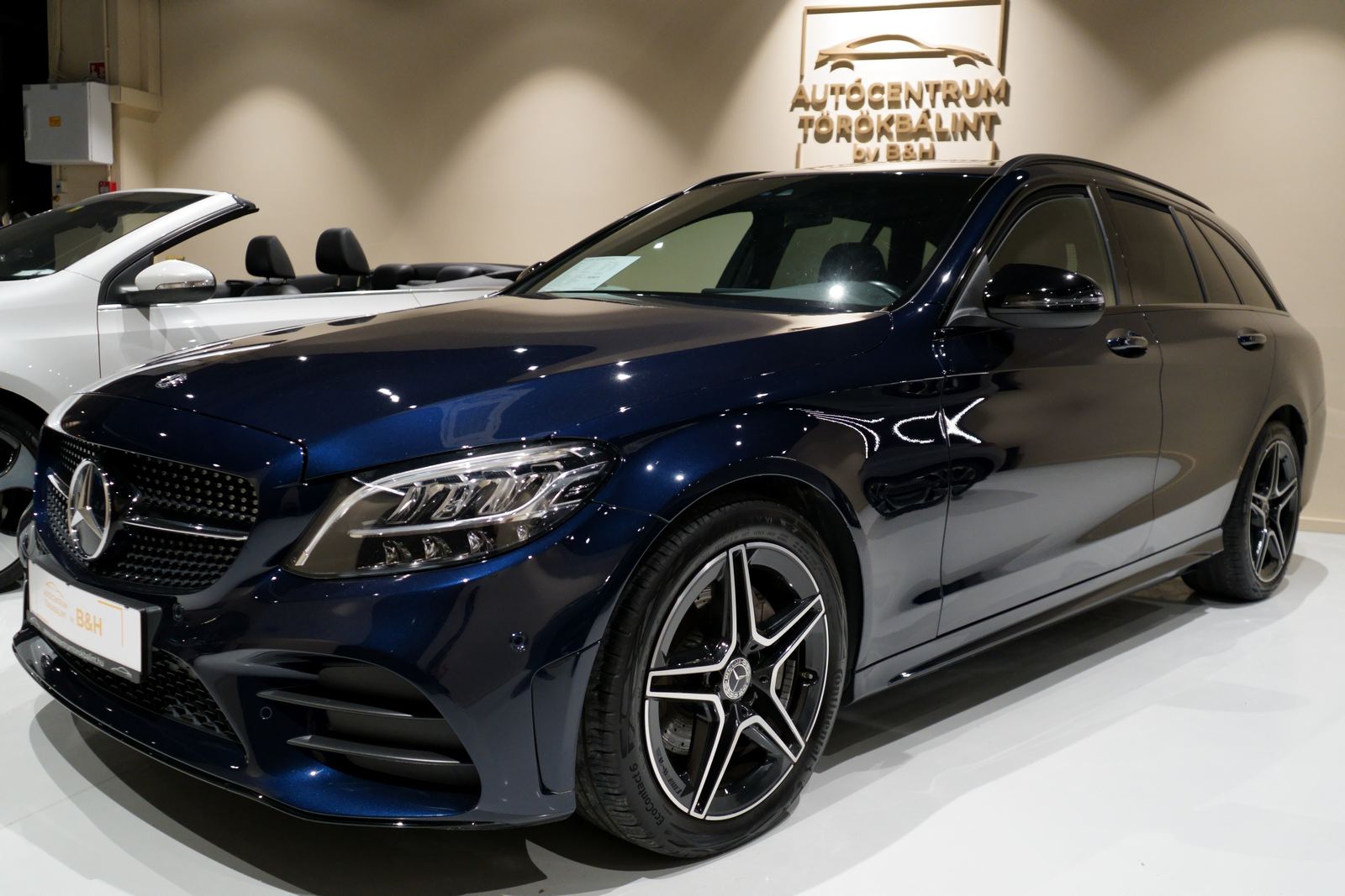 A C-osztály T-Modell AMG Line kivitele sportos megjelenést és kényelmes mindennapi használatot kínál. A Cavansitkék metálfényezés és az AMG külső optikai csomag különösen elegáns megjelenést biztosít, a kombi karosszéria pedig tágas csomagteret ad. A járműhöz téli és nyári kerekek is tartoznak.