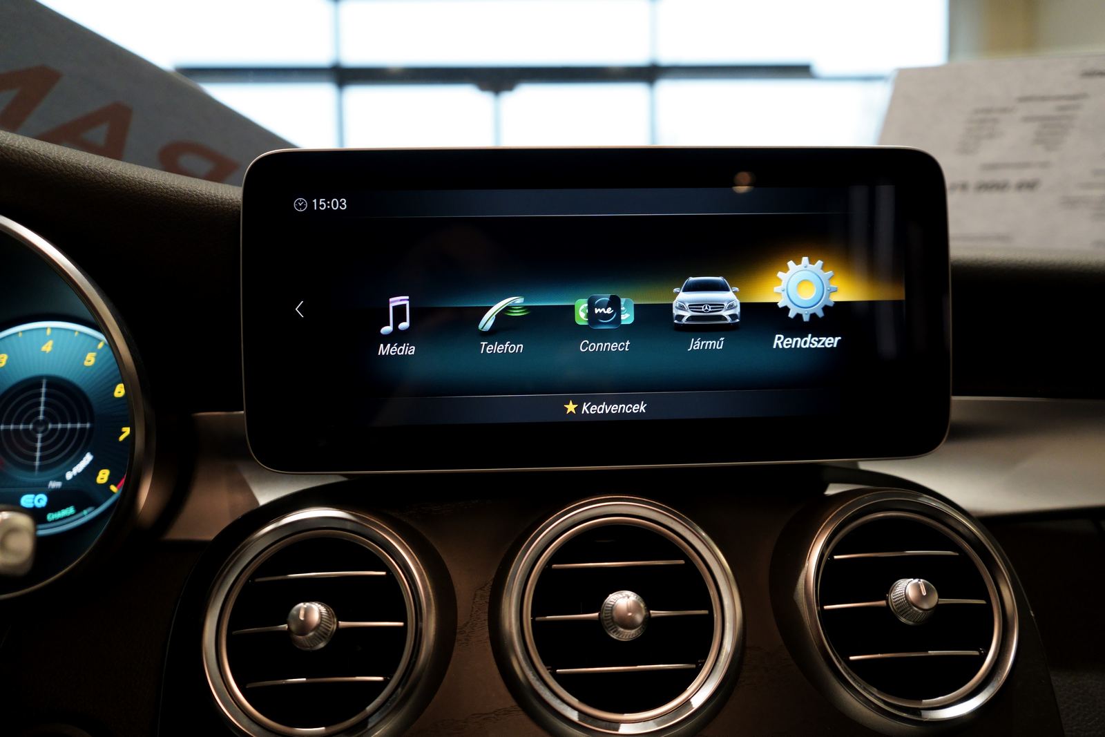A belső tér az AMG Line sajátos elemeivel modern és kényelmes: sportülések, sportkormány, fekete tetőkárpit, LED hangulatvilágítás és 2-zónás Thermatic automata klíma gondoskodik a komfortérzetről. A digitális kijelzők, a médiarendszer, az okostelefon-integráció és a többfunkciós kezelőfelület korszerű környezetet biztosítanak.